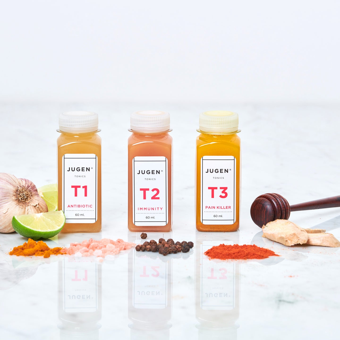 Detox Jugen es una experiencia de bienestar integral diseñada para reiniciar tu cuerpo, calmar tu mente y recuperar tu energía vital. Durante 1, 3 o 5 días disfrutarás una selección de jugos prensados en frío, tónicos funcionales y una lechada nutritiva, cuidadosamente formulados para limpiar, nutrir y restaurar desde adentro.